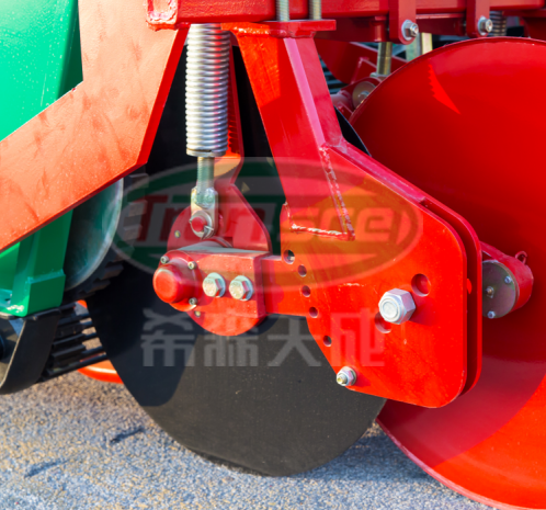 It is mainly composed of a disc knife, a fixed frame, a compression spring and a regulating device. The disc knife is driven by no power, and is mainly used to cut the surface along the ridge along with the weeds.Digging parts: