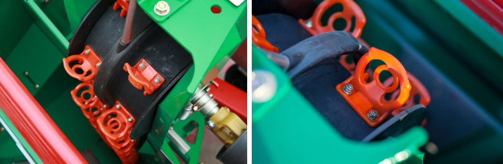 Spraying system uses a higher degree of atomization of the PTFE nozzle, not only its angle adjustable, but also by the traditional seed potato after the spray to change the front and rear spray, so that more closely covered.